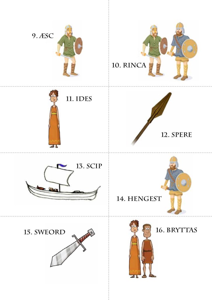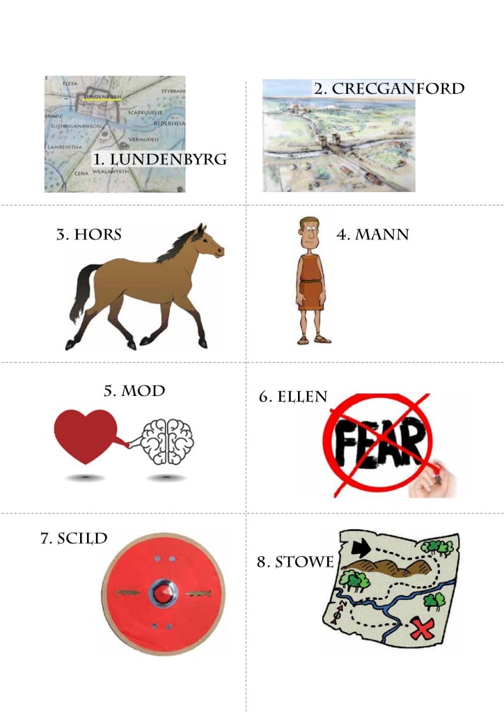 Pupils can work alone or in groups to match up the Old English and modern English words. Numbers and images on the Old English word cards make it easier to check vocabulary as a class when the children have finished.